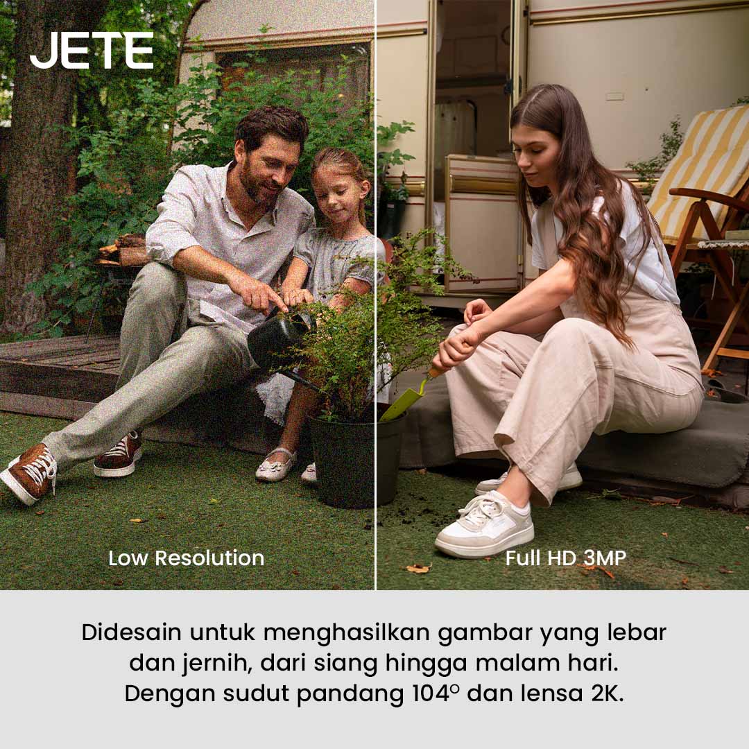 CCTV JETE CT5 menghadirkan pengawasan maksimal berkat lensa 2K yang menghasilkan video jernih dan detail. Cakupan pandangan luas hingga 104° membuat setiap area ruangan tetap dalam pantauan Anda dengan sempurna.