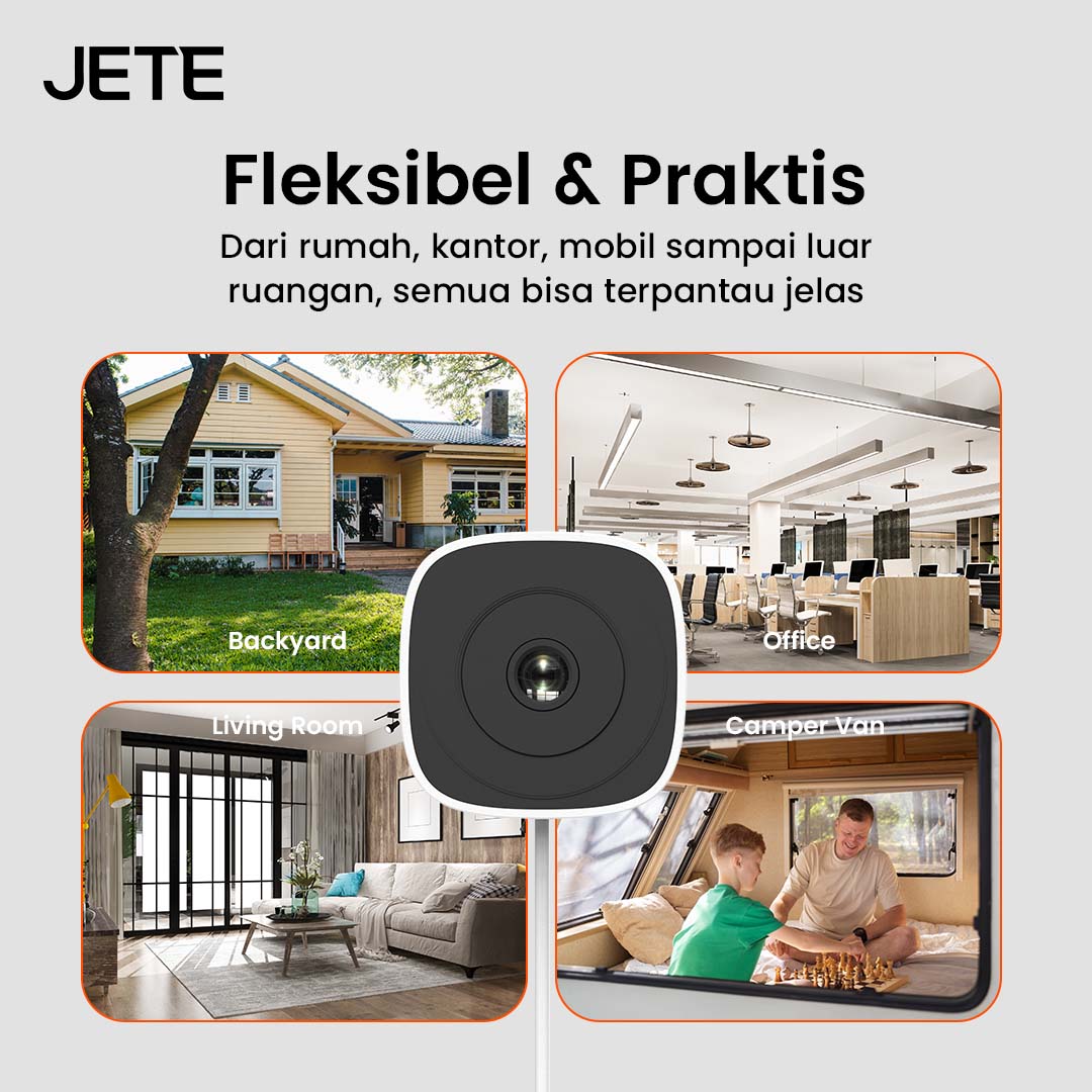 Dengan desain yang praktis, pengguna dapat dengan mudah menempatkan kamera CCTV JETE CT5 di area yang diinginkan. Mulai pemasangan indoor dalam ruangan rumah sampai kantor. Bahkan, dapat dipasangkan di dalam camper van untuk pengawasan saat traveling.