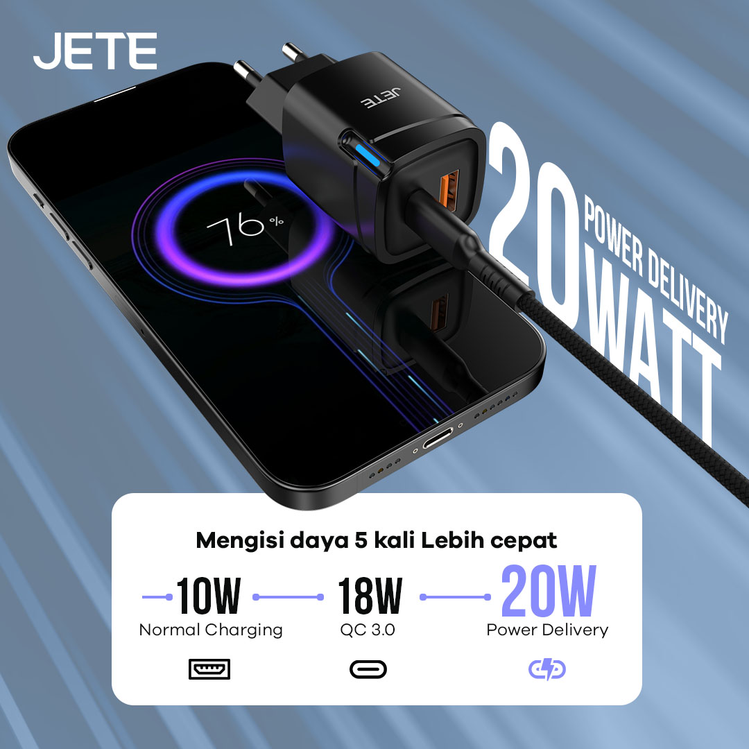 JETE E31 Series adalah adapter charger 20W pilihan tepat untuk Anda. Dengan desain yang ringkas, daya lebih besar, dan pengisian lebih cepat, bisa diandalkan di berbagai kondisi. Termasuk dengan fitur keamanan ekstra untuk membuat penggunaan yang nyaman.