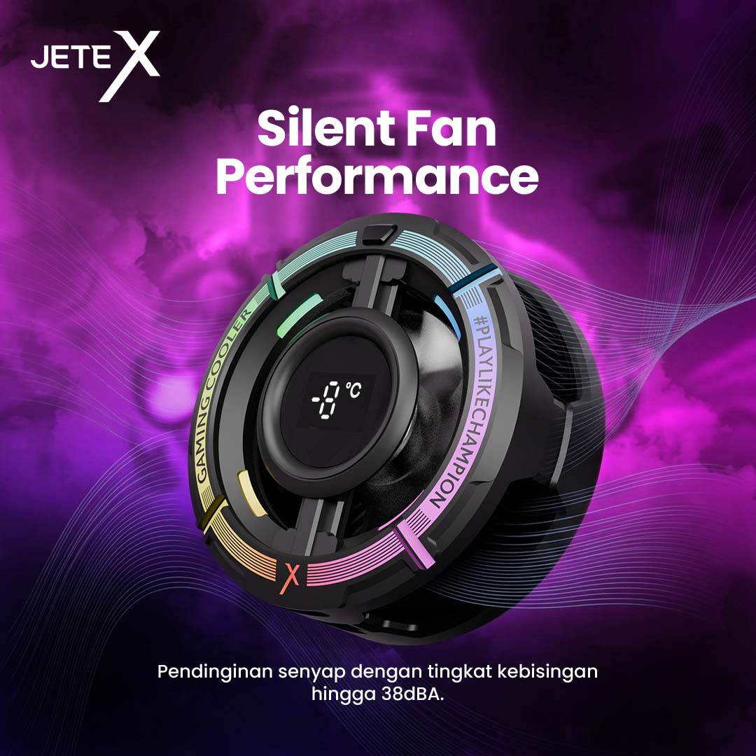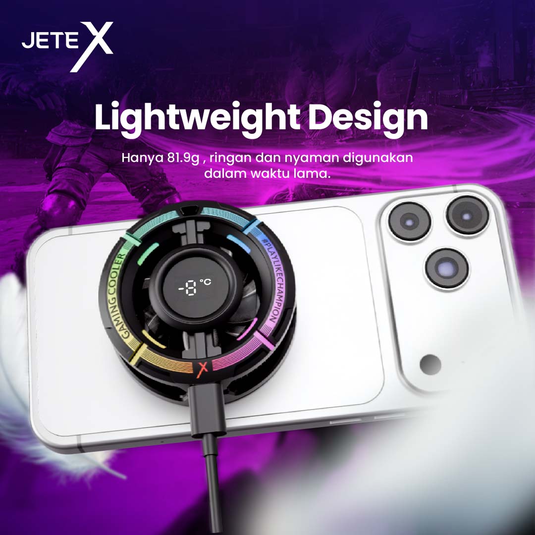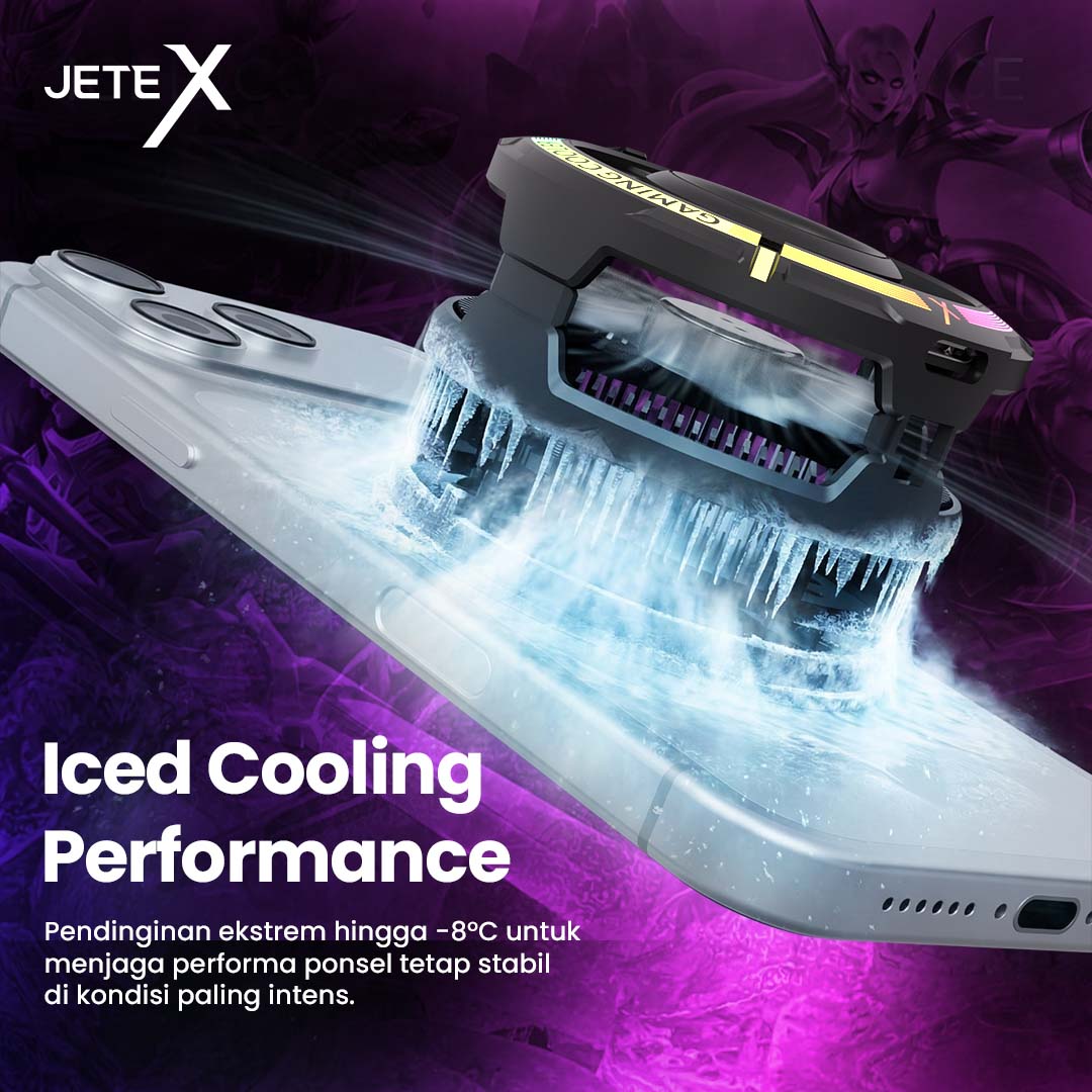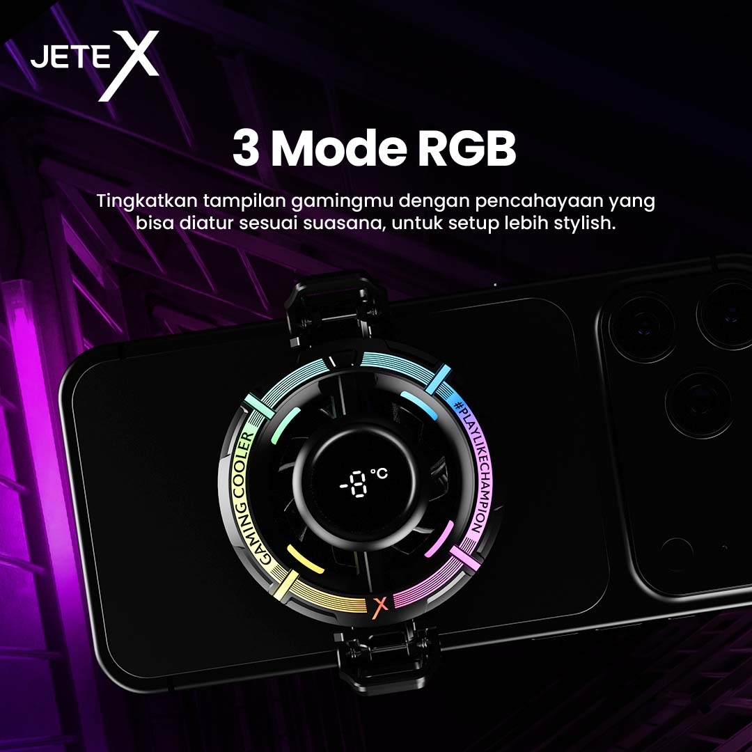 JETE-X PX2 adalah cooler phone yang dirancang untuk mendukung performa gaming tinggi. Menghadirkan pendinginan cepat dan optimal dengan desain ringkas serta stylish. Dilengkapi RGB light dan sistem pemasangan praktis yang bisa dipasang hanya dalam hitungan detik