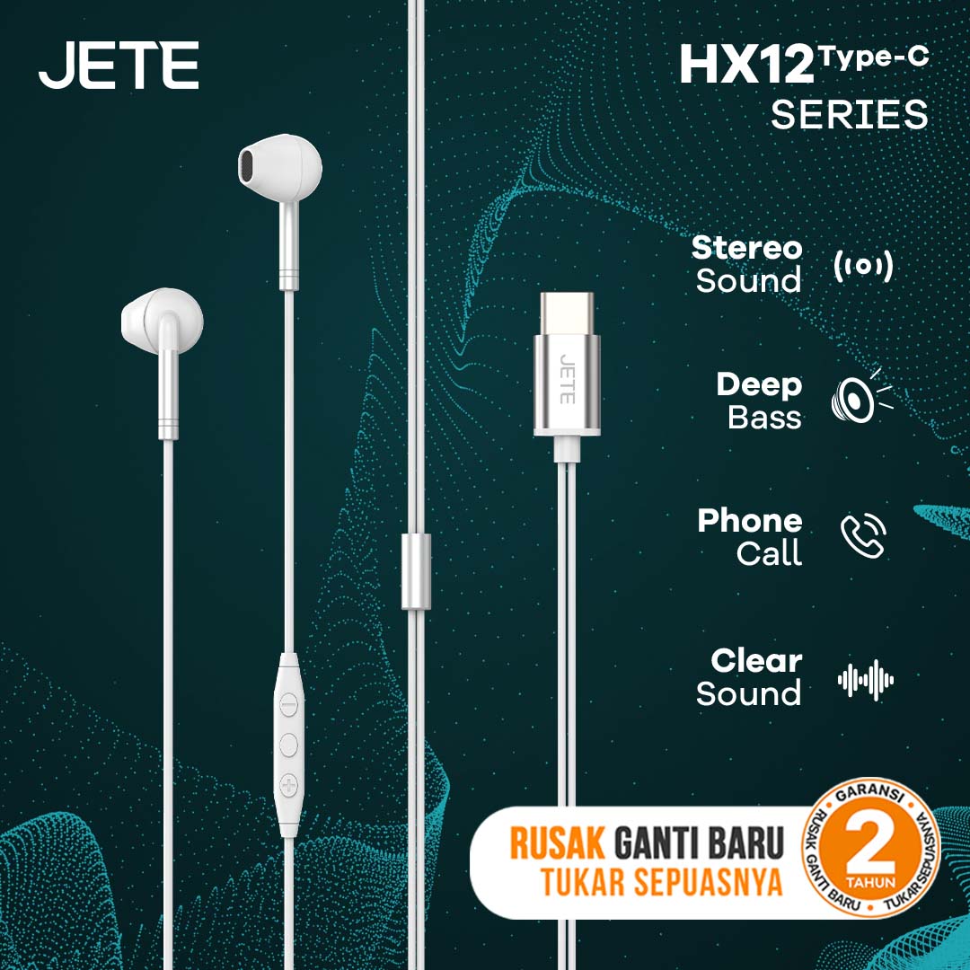 Earphone JETE HX12 (Type -C) Series adalah pilihan tepat untuk pengguna yang menginginkan perangkat audio yang ringan, ergonomis, dengan suara yang jernih dan menggelegar. Earphone type C ini cocok untuk temani aktivitas sepanjang hari.