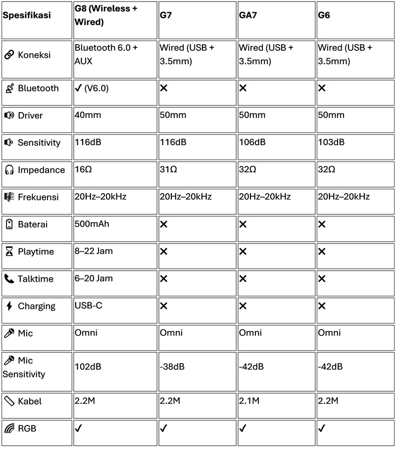 JETE-X G8 adalah headphone gaming dengan dual koneksi yang dirancang dengan material terbaik untuk mendukung kenyamanan. Fitur audio terbaru menjadikan pengalaman penggunaan dan bermain game yang lebih imersif sekaligus menghidupkan suasana.