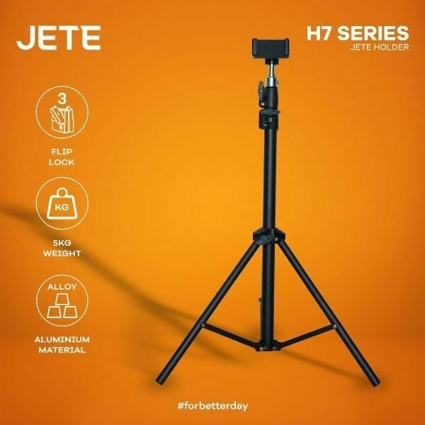 Holder Hp atau bisa juga disebut Holder Hp Tripod JETE ini bisa memudahkan Anda saat beraktivitas menggunakan smartphone. Tripod HP ini memiliki tinggi minimal 60 CM dan tinggi maksimal 170 CM. Selain itu, Tripod ini juga sangat kuat karena terbuat dari aluminium berkualitas.