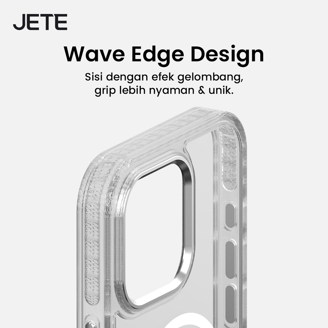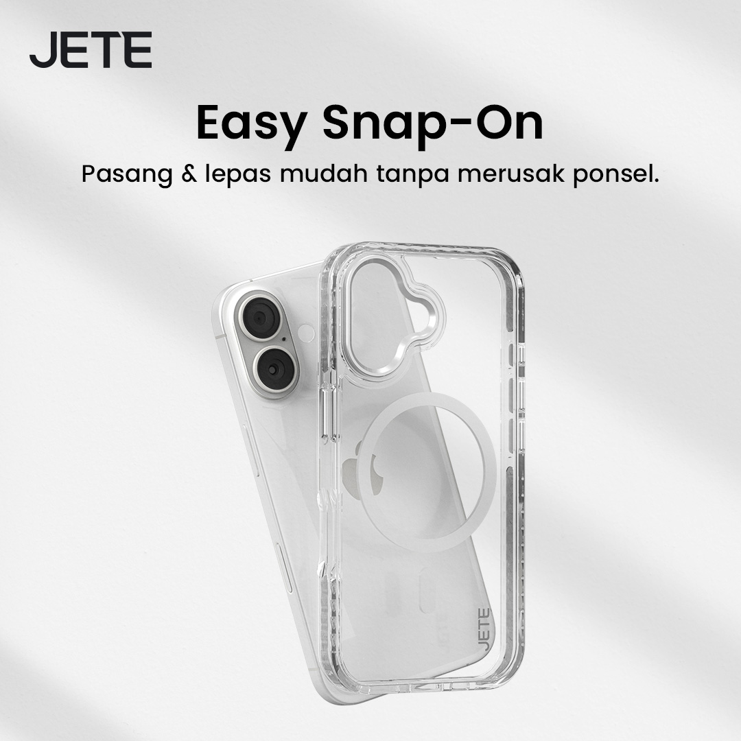 Tak perlu lagi waktu lama untuk memasang dan melepasnya dari perangkat, JETE Case iPhone 16 Crystal Wave mudah dipasang maupun dilepas. Desain slim-fit membuatnya pas menyeluruh di iPhone, sekaligus memberikan perlindungan menyeluruh dari debu.