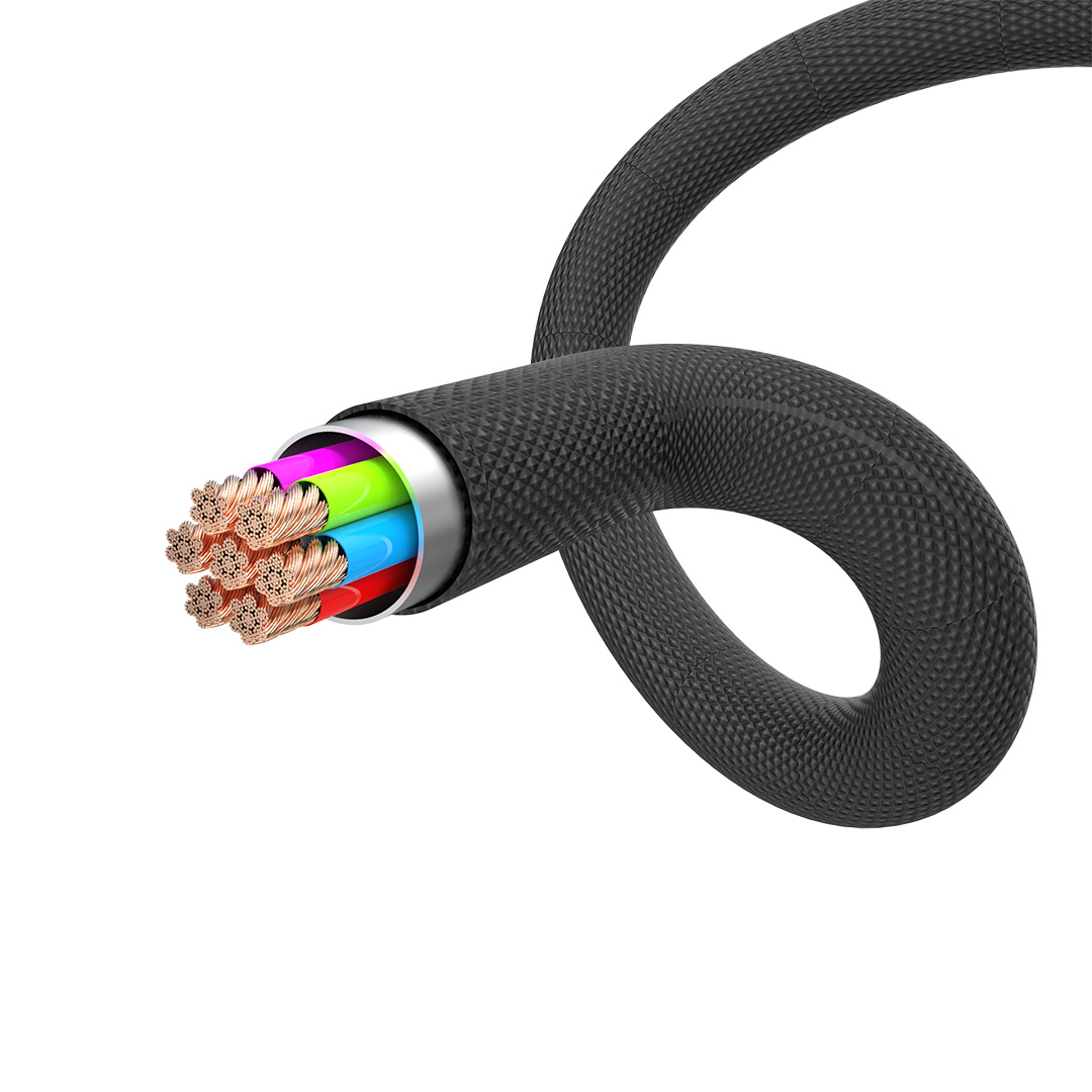 Bagian dalam atau inti kabel dirancang dengan ketangguhan yang luar biasa. Dengan diperkuat tembaga berkualitas premium, memberikan kecepatan transfer yang unggul dan ketahanan lebih optimal. Menjadikannya semakin awet digunakan dalam waktu lama.