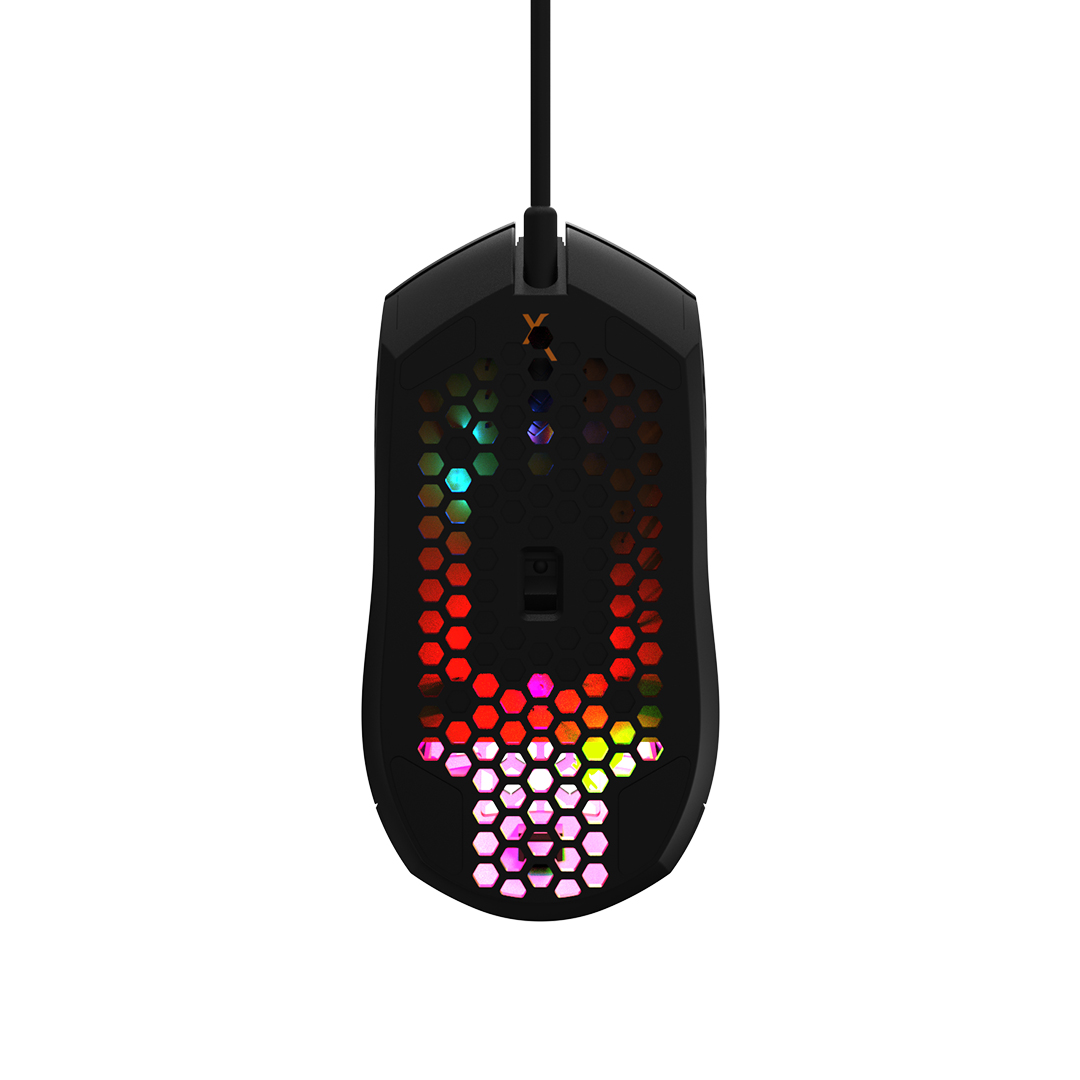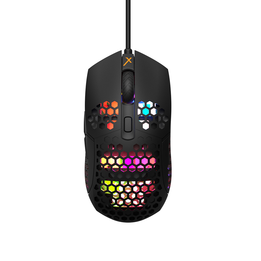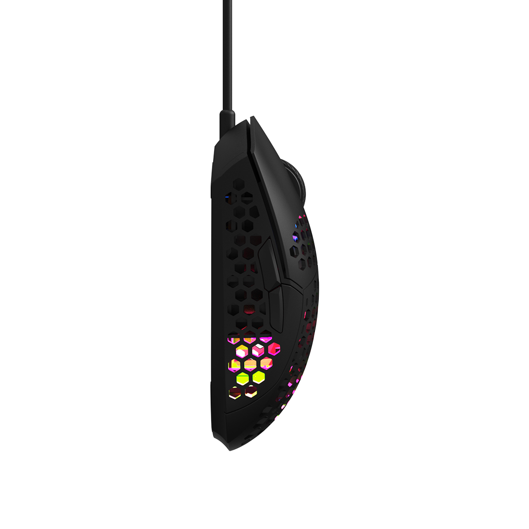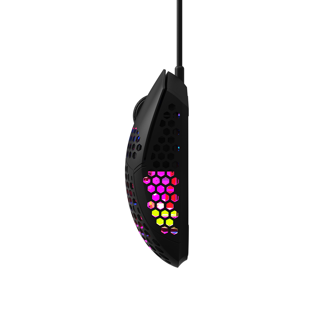 Bagian luar mouse dirancang dengan desain honeycomb yang membantu meningkatkan sirkulasi udara sekaligus mengurangi bobot mouse secara signifikan. Selain itu, menjaga telapak tangan tetap sejuk saat digunakan dalam waktu lama untuk pergerakan yang lebih cepat, ringan, dan presisi untuk mendukung performa gaming maksimal.