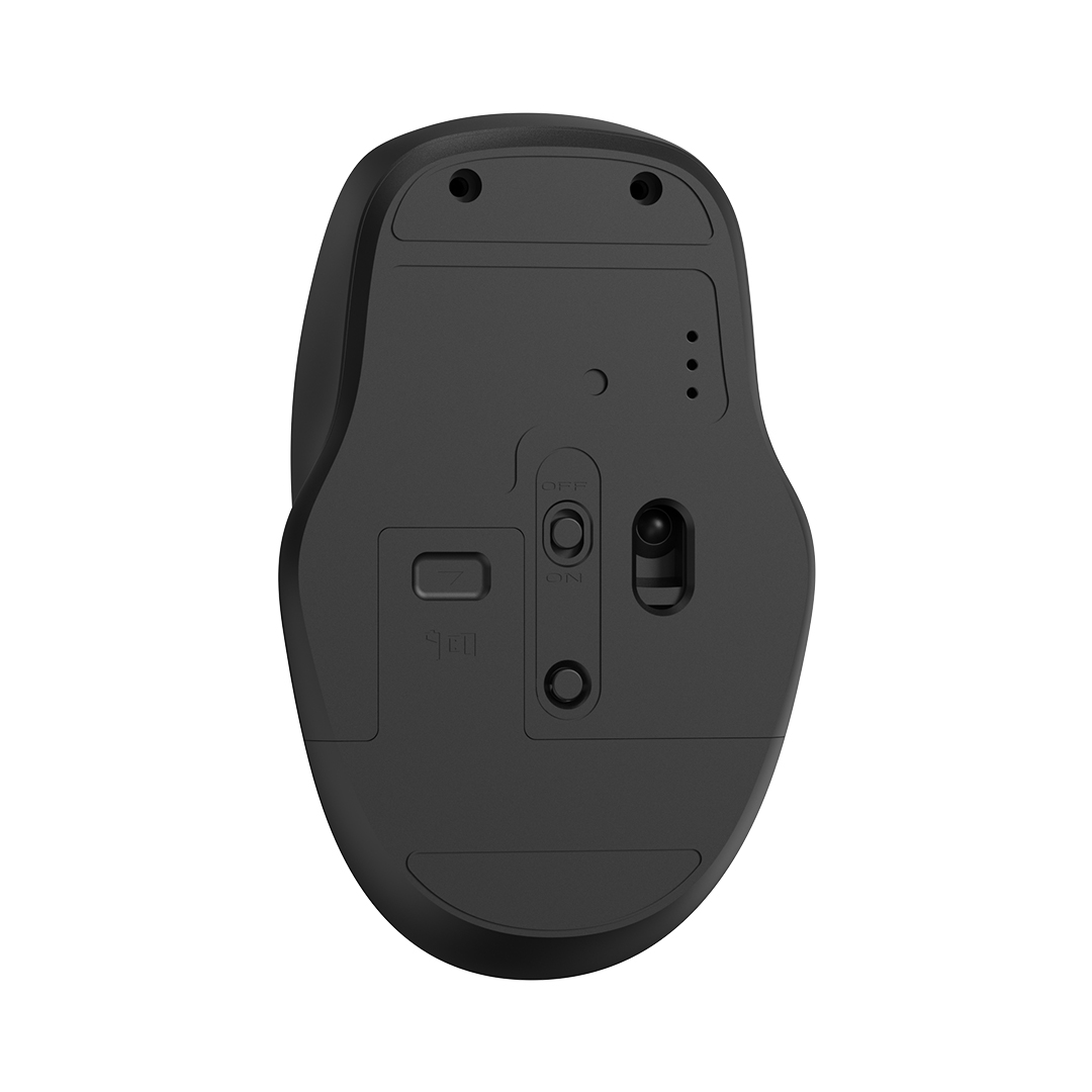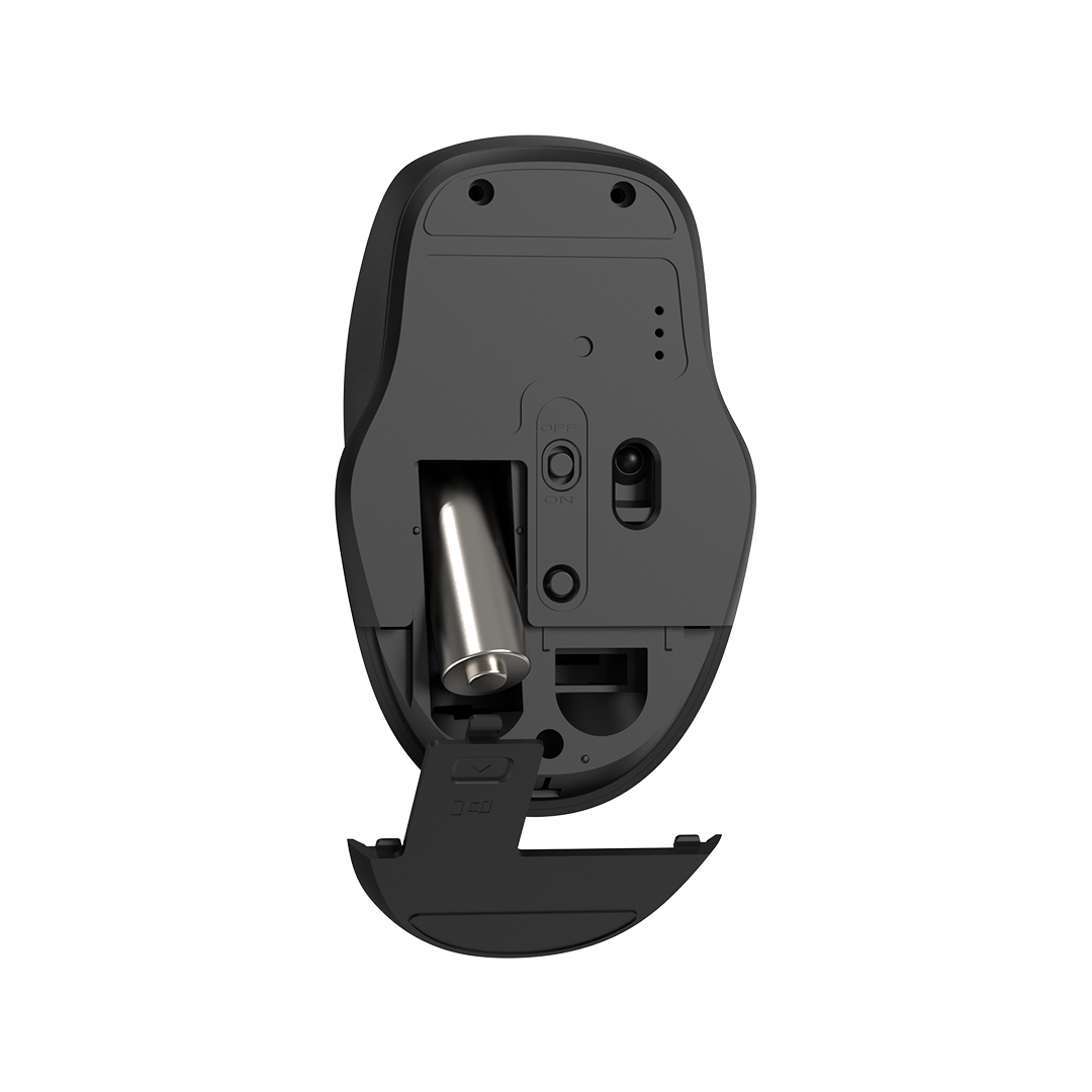 Bagian bawah mouse dilengkapi dengan fitur Power Switch. Dimana fitur ini dapat meningkatkan dan menghemat masa pakai baterai. Geser ke arah “OFF” untuk menonaktifkan dan “ON” untuk menyalakan.