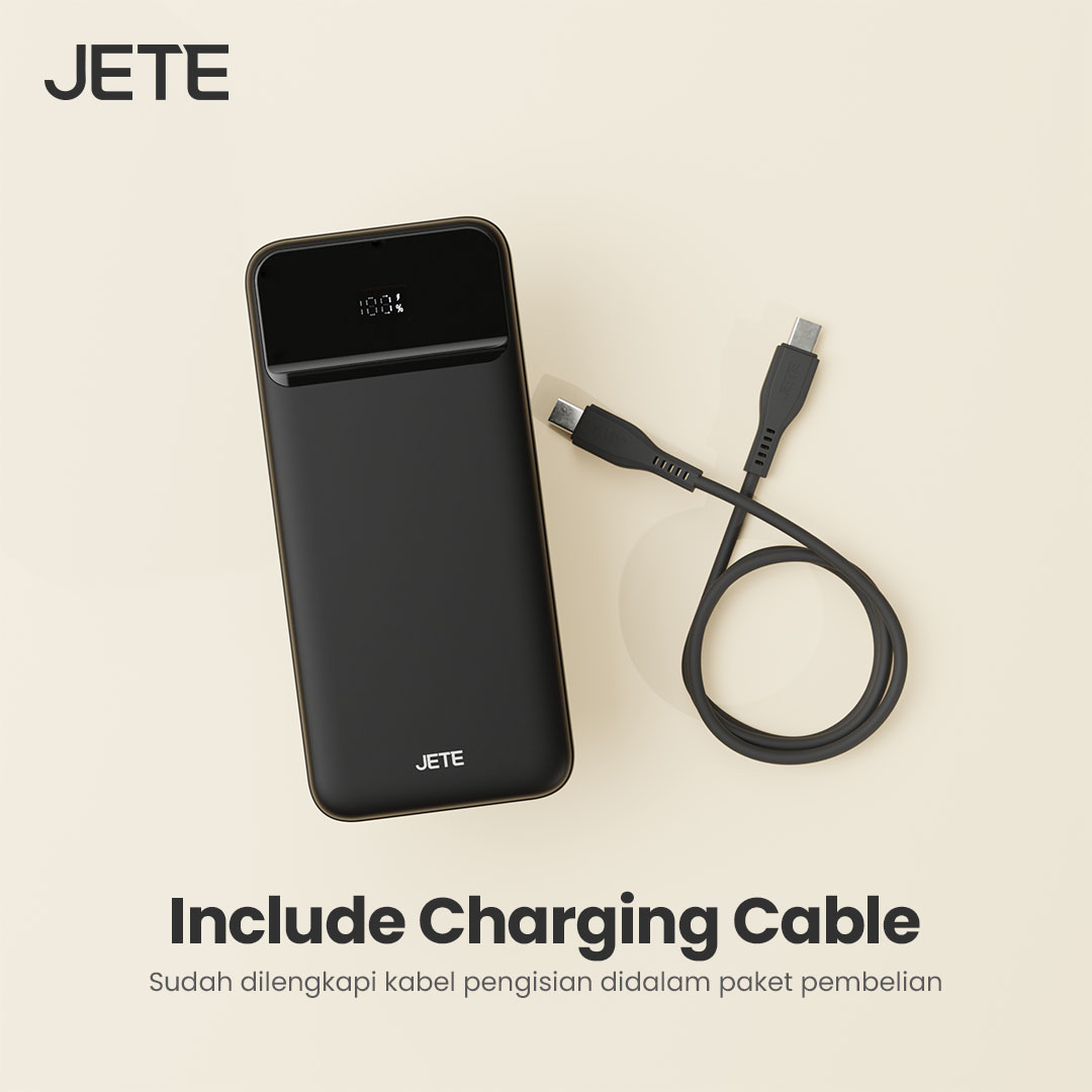 Tak perlu lagi membeli kabel charger secara terpisah! Powerbank JETE C12 kini hadir lengkap dengan kabel pengisian daya. Membuatmu lebih hemat dan praktis dalam satu perangkat yang ideal. Kabel ini pun terbuat dari material yang kokoh dan kuat.
