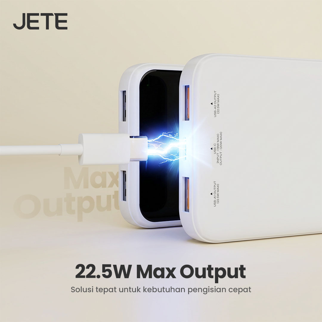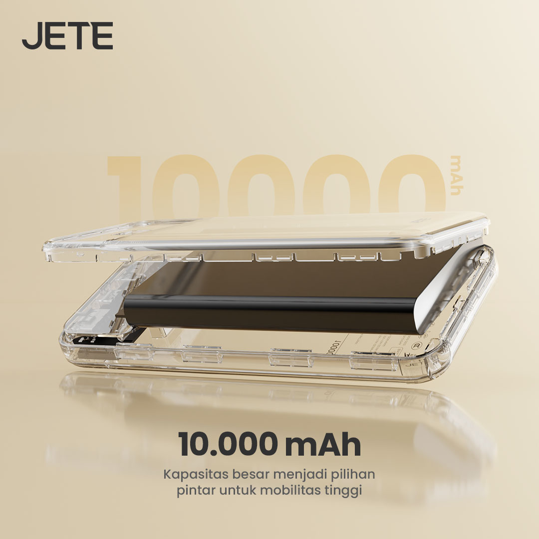 Dengan kapasitas besar 10.000mAh, JETE C12 memungkinkan pengguna aktif tetap produktif sepanjang hari tanpa khawatir kehabisan daya. Powerbank ini juga mampu mengisi berbagai perangkat secara optimal, sehingga tetap bebas bergerak dan menjalani aktivitas harian dengan nyaman.