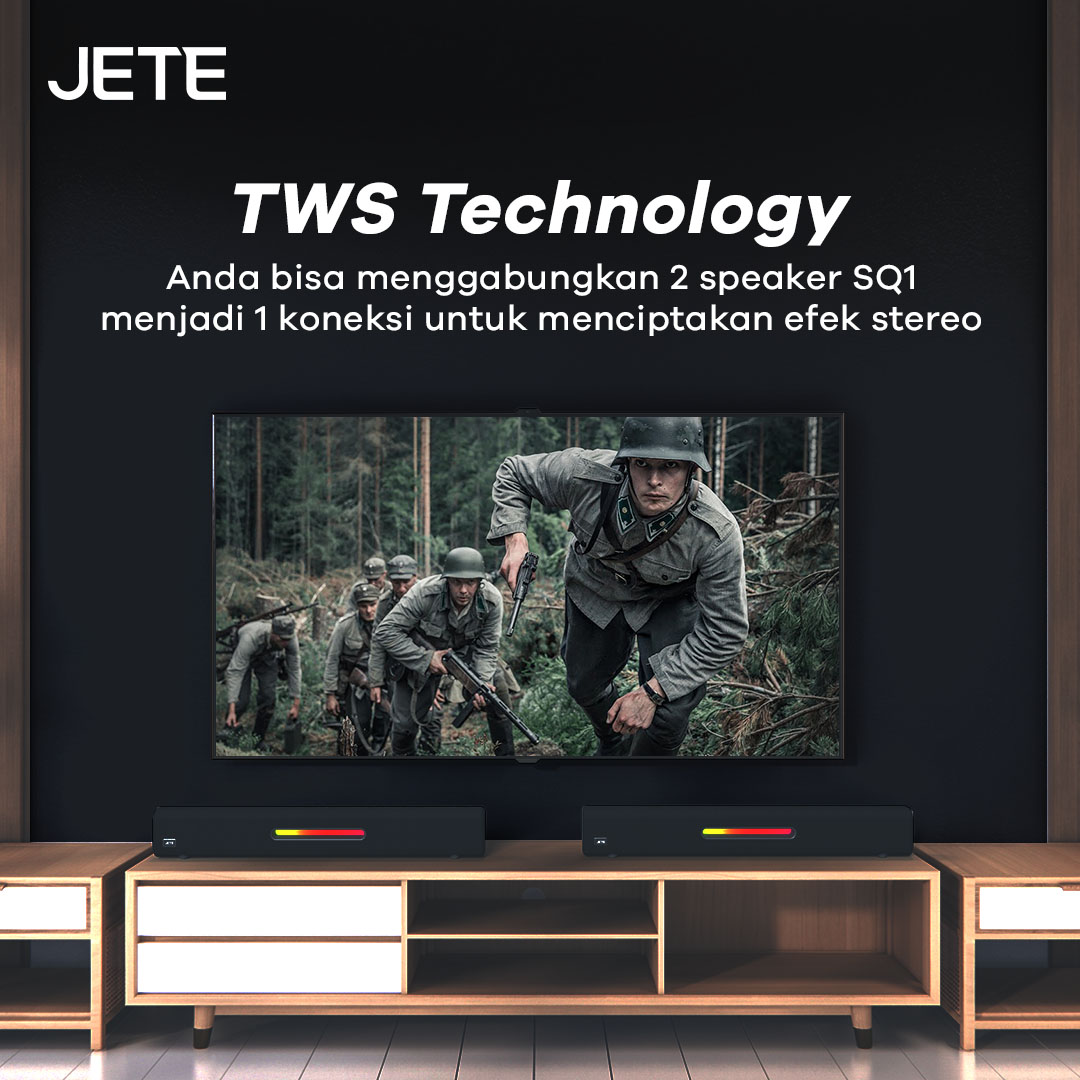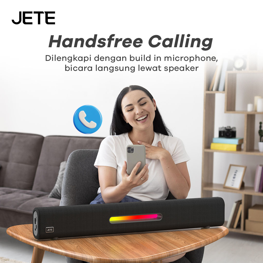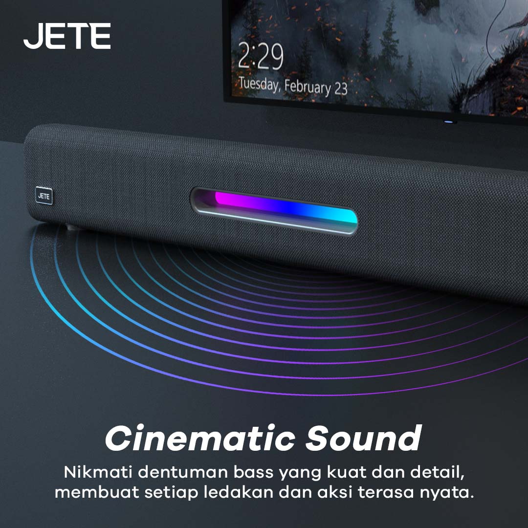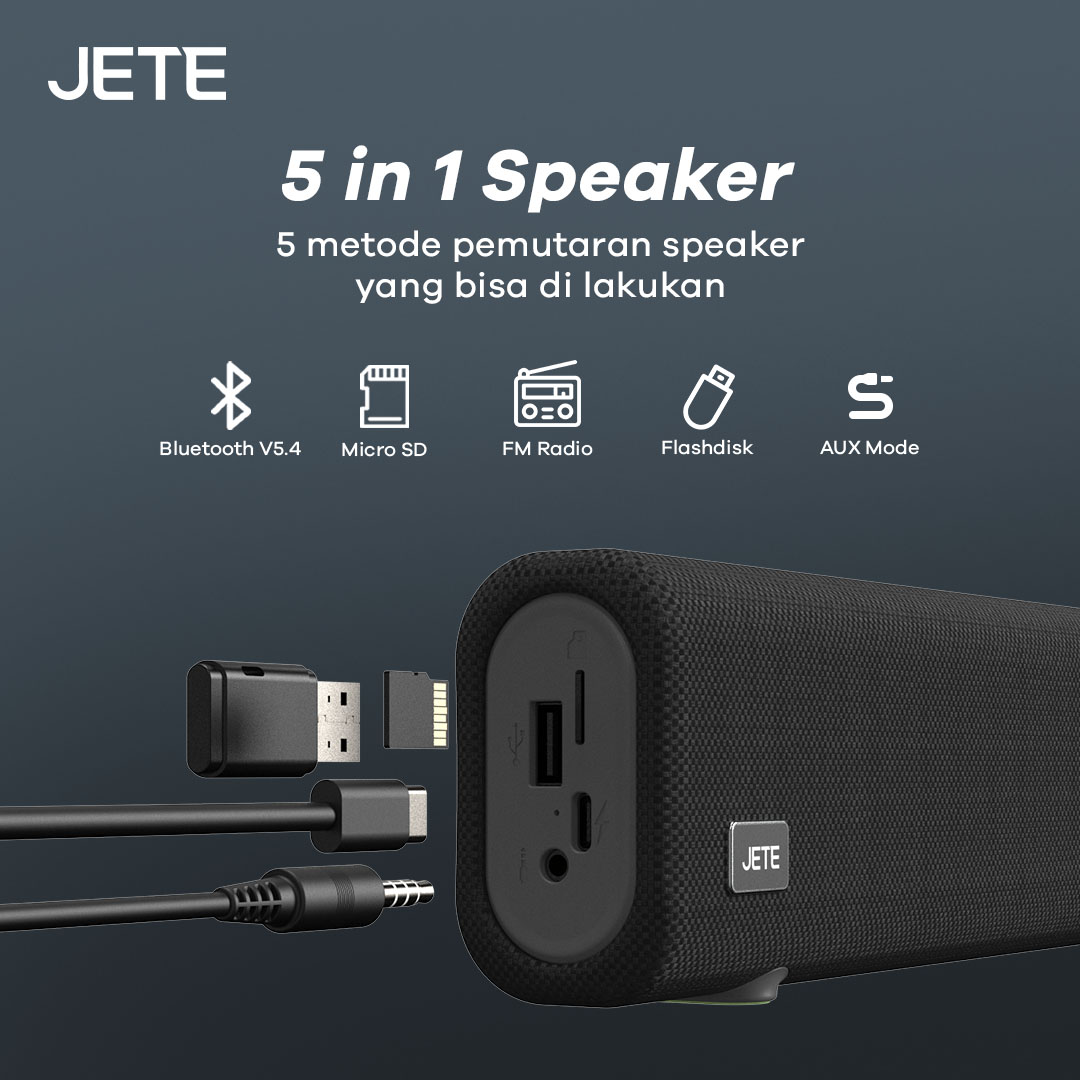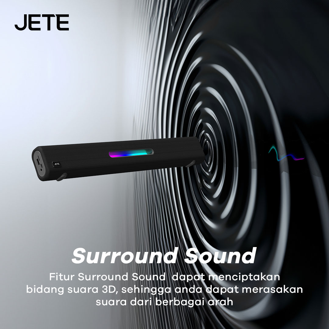 JETE SQ1 adalah speaker Bluetooth dengan desain soundbar yang memukau. Ada enam mode pemutaran, hadirkan audio dengan efek imersif. RGB light yang disematkan membuat tampilannya lebih keren sepanjang hari.
