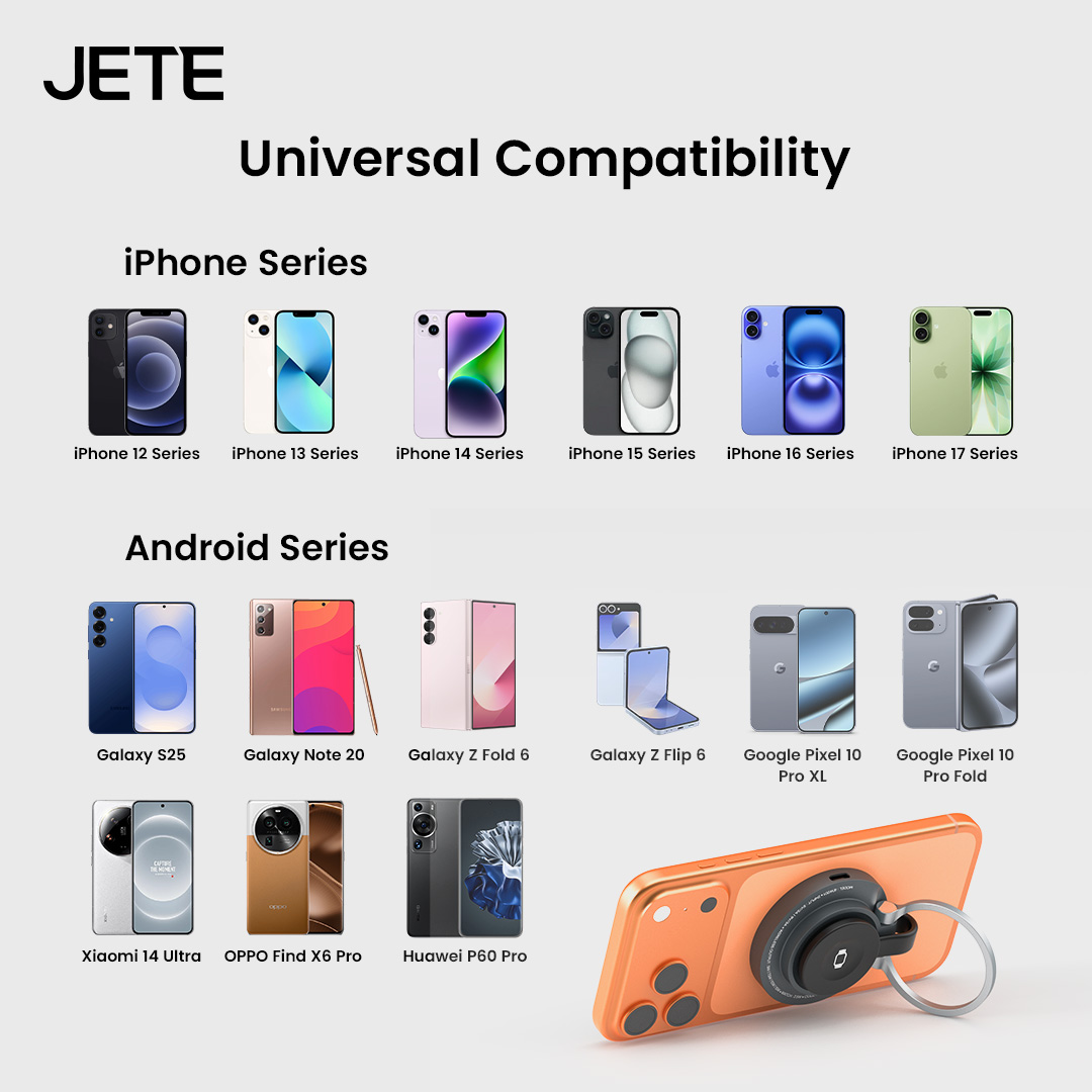 Selain praktis, charger JETE iEW201 juga kompatibel di berbagai smartphone, khususnya kelas flagship. Baik smartphone dengan sistem operasi Android maupun iOS. Mulai dari iPhone seri 12 hingga 17 yang terbaru. Begitu juga dengan berbagai merek ternama seperti Samsung, Xiaomi, Huawei, dan Google.
