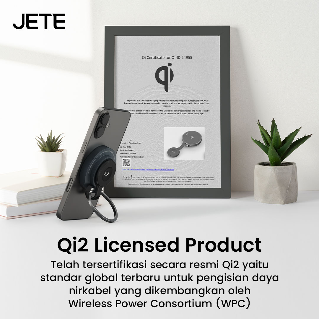 JETE iEW201 adalah charger magnetik yang dirancang khusus untuk memberikan kenyamanan dan keamanan terbaik. Didukung sertifikasi Qi2 dan berbagai fitur unggulan, membuat pengisian daya jadi lebih baik untuk perangkat Android dan iOS.