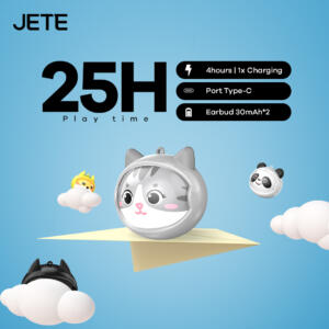 JETE FS1 Series menjadi pilihan tepat bagi kamu yang mengutamakan desain lucu dan unik. TWS ini hadir dengan case berkarakter yang bisa diputar untuk menampilkan mood berbeda sehingga terlihat playful dan menarik. Ditambah dengan tali lanyard, tampilannya bukan hanya praktis dibawa ke mana saja tetapi juga menyerupai aksesori fashion yang menunjang gaya harian.