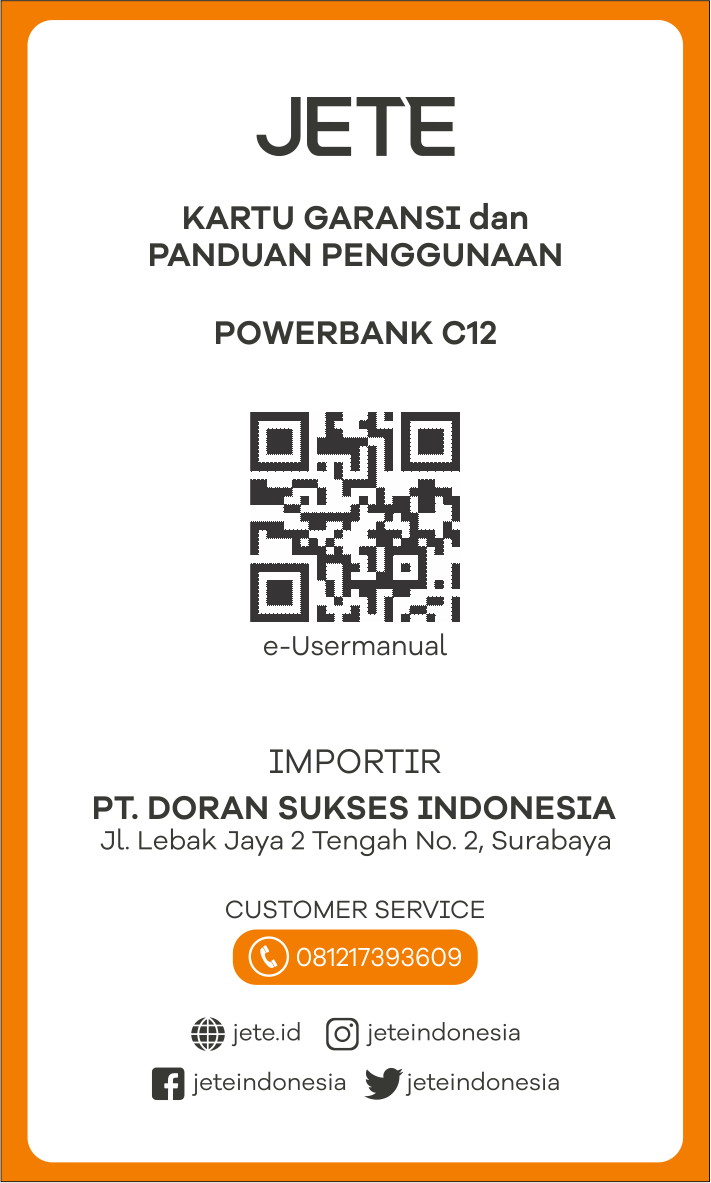 Dirancang untuk kenyamanan dan keamanan, JETE C12 menjadi pilihan tepat bagi pengguna aktif yang membutuhkan powerbank andal saat traveling. Sertifikasi CCC memastikan perangkat ini aman dibawa dan digunakan di Cina tanpa khawatir masalah keamanan.