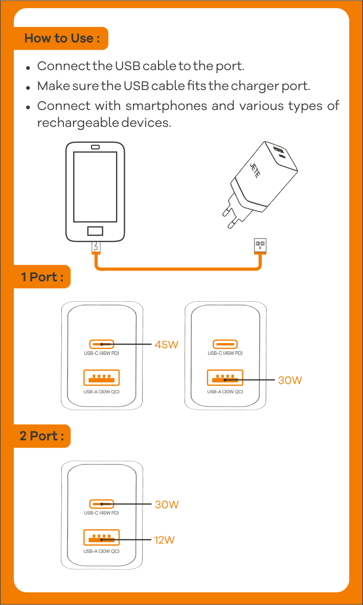 Tak perlu khawatir soal keamanan. Berkat dukungan Smart IQ Technology, charger dapat mengoptimalkan pengisian daya sesuai dengan kebutuhan. Selain itu, dapat mengoptimalkan penggunaan energi dengan mengurangi konsumsi daya saat tidak ada perangkat yang dihubungkan