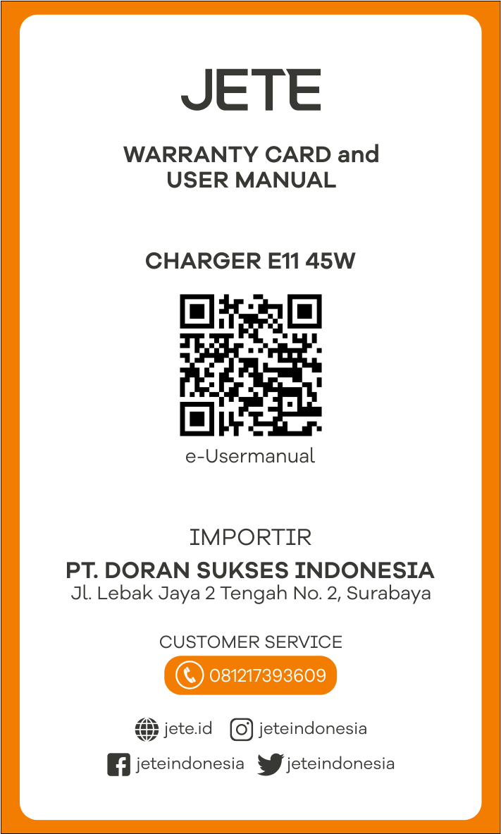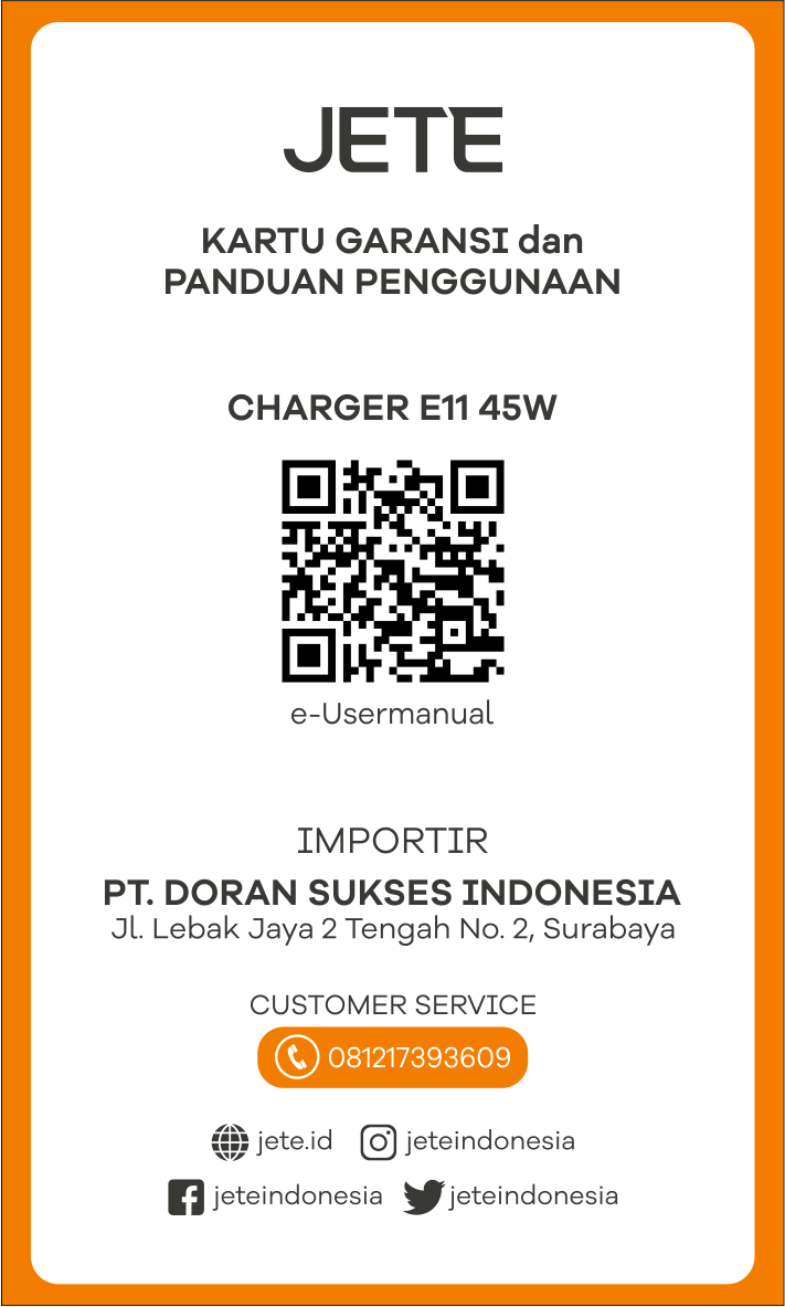 Lihat atau unduh user manual book Travel Charger JETE E11 45W di sini.