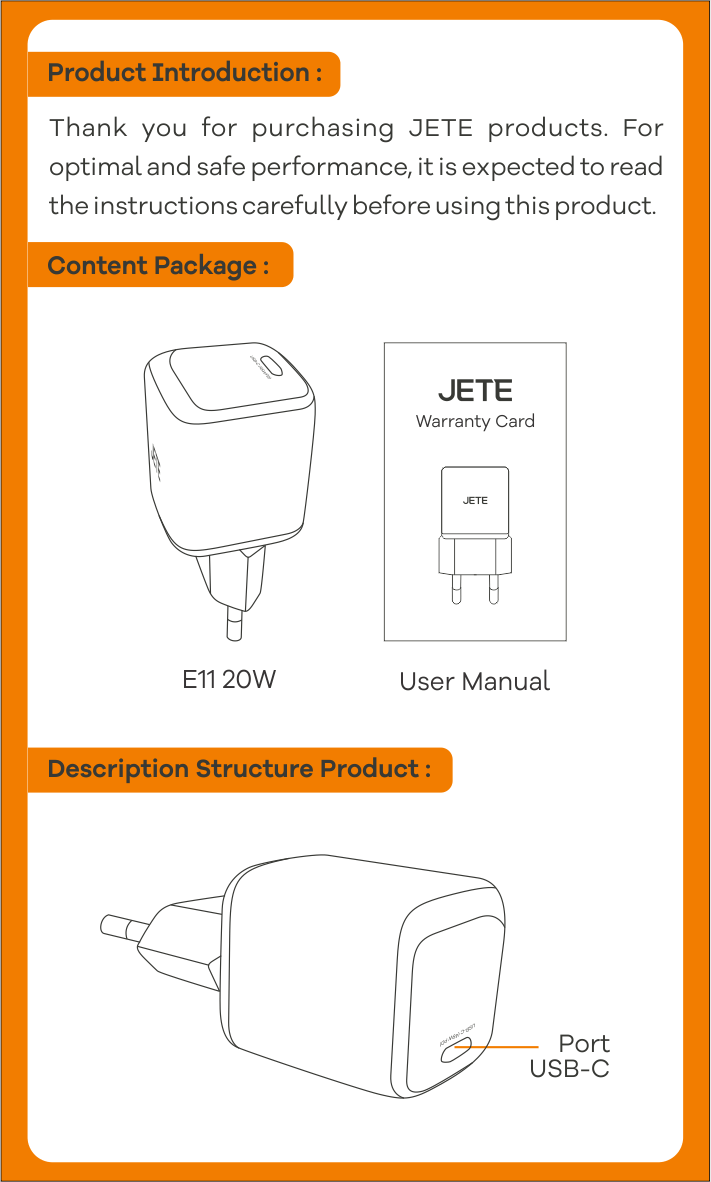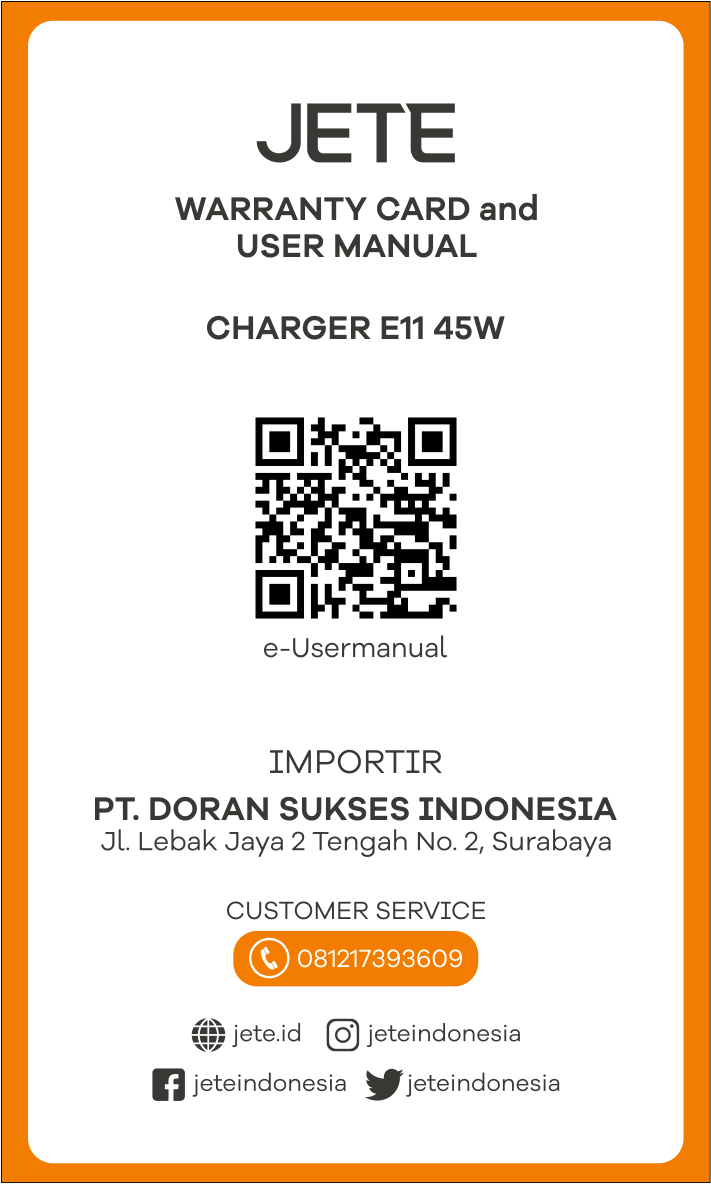Lihat atau unduh user manual book Travel Charger JETE E11 45W di sini.