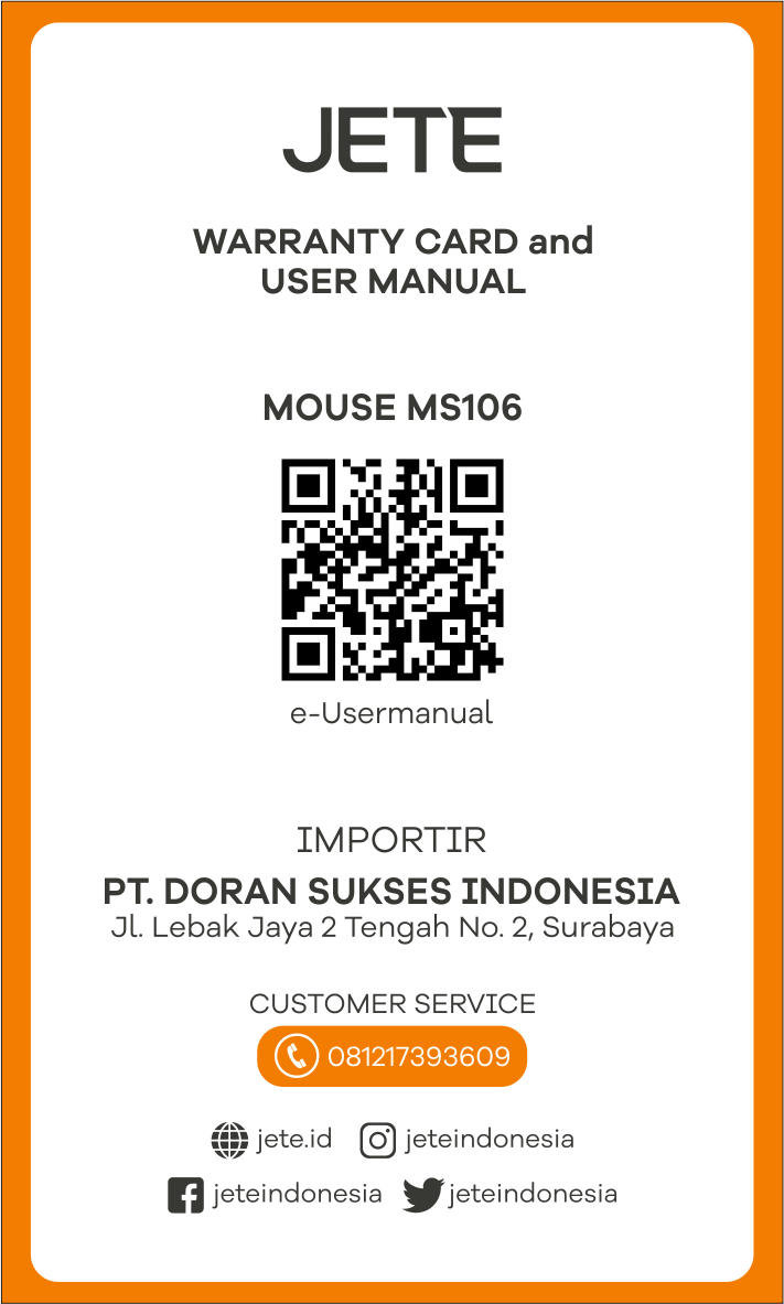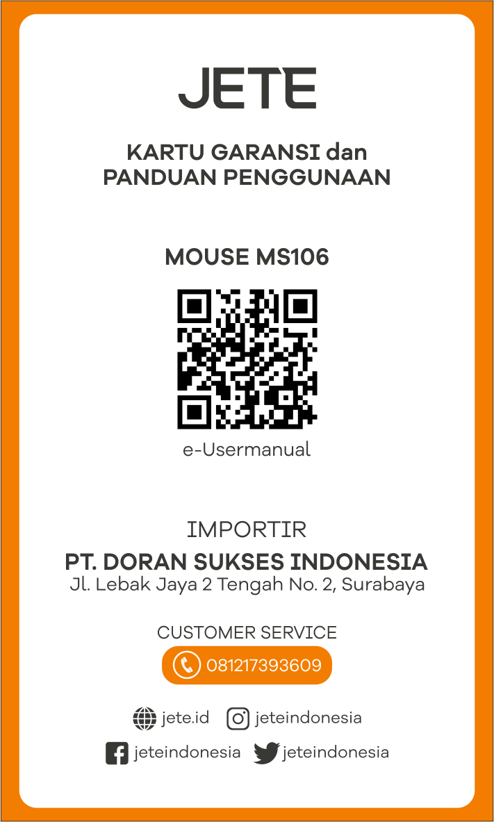 - Kerusakan pada unit Mouse JETE dapat diajukan klaim garansi dan akan diganti dengan unit baru.