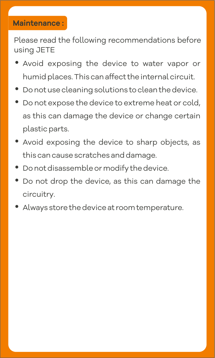 - Selalu simpan perangkat pada suhu kamar.