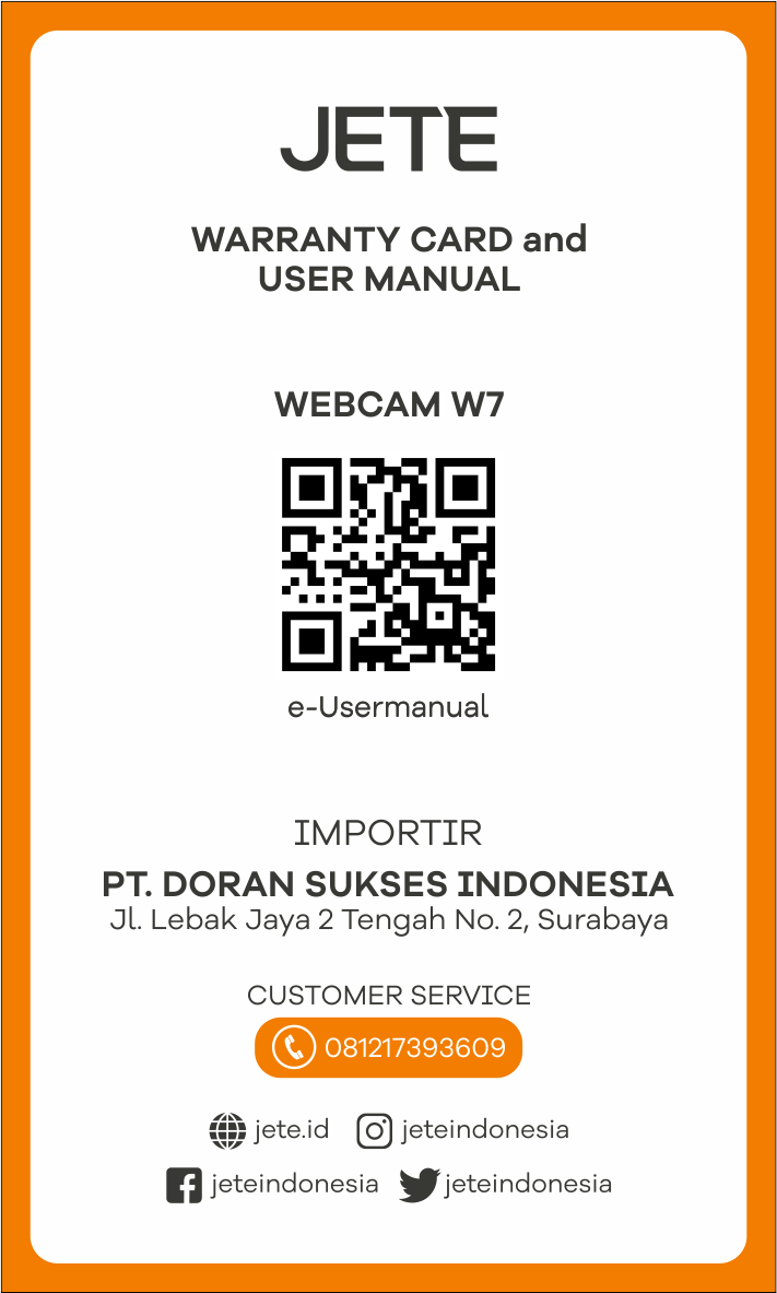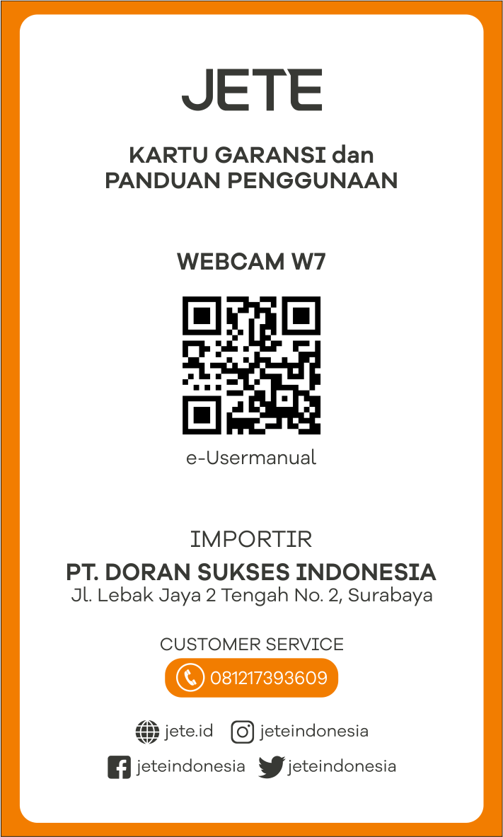 - Kerusakan pada unit Webcam JETE dapat diajukan klaim garansi dan akan diganti dengan unit baru.
