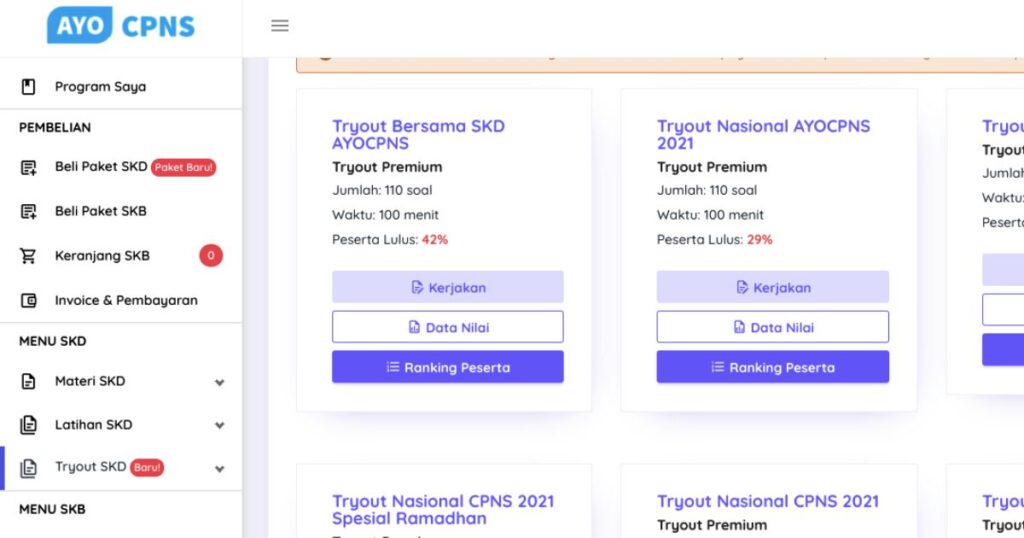 Mereka menyediakan program kelas karantina, super intensif, dan kelas platinum untuk persiapan tes CPNS 2021. Selain itu, situs ini menawarkan pembelajaran intensif dalam bentuk karantina serta simulasi realistis untuk persiapan tes CPNS dengan soal berbasis SKD dan sistem CAT.